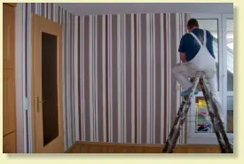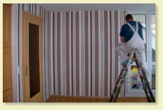 TapezierarbeitenHeute gibt es eine unüberschaubare Anzahl von Mustern, unzählige Kataloge, verschiedenste Materialien.Nehmen Sie unsere Hilfe in Anspruch. Wir leihen Ihnen Kataloge, beraten sie bei den Mustern und bringen natürlich die Tapete Ihrer Wahl an Decke oder Wand.Von der Raufaser bis zur Seidentapete, die Auswahl ist groß. Oder Sie entscheiden sich für Strukturvlies.Vielleicht möchten Sie aber auch Glasdekorgewebe geklebt haben. Tapeten ein individueller wand- und Deckenbelag.