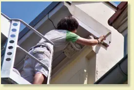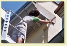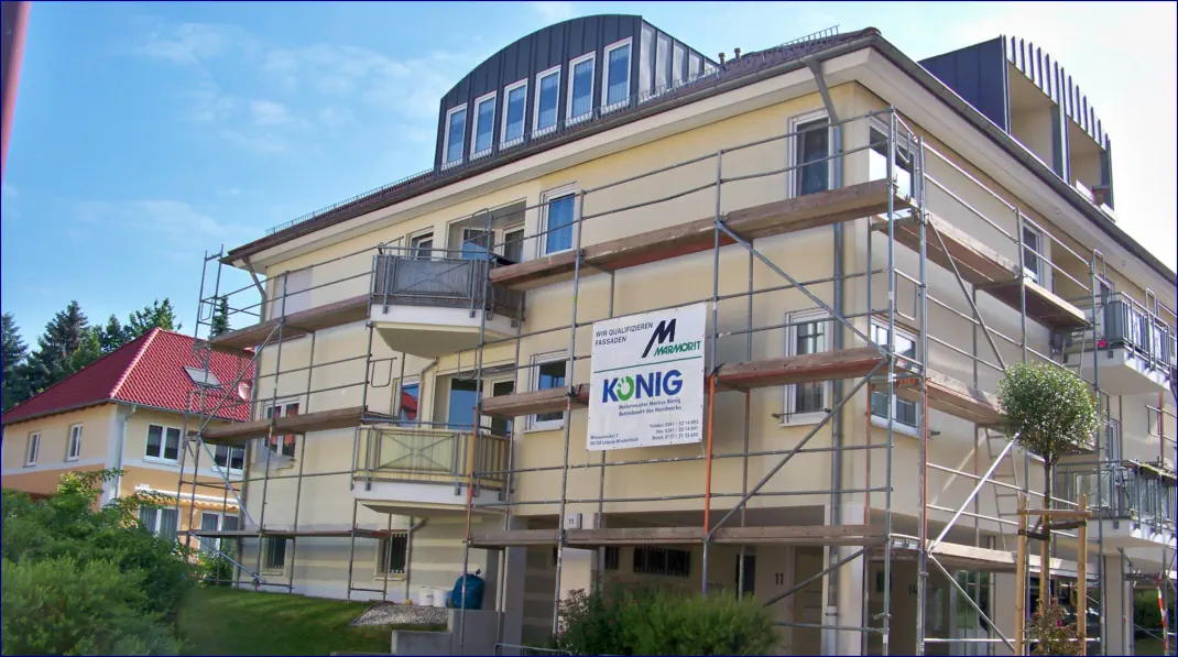 Fassadenarbeiten - Aussenarbeitenbedeuten nicht nur Verschönerung, sondern sind sehr wichtig für die Erhaltung der Bausubstanz. Beschädigungen an der Fassade und Algenbildung können großen Schaden im Mauerwerk anrichten, durch die Wasser in die Wohnräume eindringen kann und die Bildung von Schimmel begünstigt.Natürlich beschränken wir uns nicht nur auf die Fassadenbeschichtung. Renovierungsanstriche beiHolzfenstern, und Verbretterungen, Korrosionsschutz, Beschichtung von Balkonen und Terrassen bilden einweiteres Aufgabenfeld. Selbst Beschriftungen von Fassadenführen wir gern für Sie aus.Neubeschichtung oder FassadensanierungBei der Fassadensanierung ist neben der Farbgestaltung auch die Funktion der Beschichtung von Bedeutung. Ob tmungsaktiv, dauerelastisch und rißüberbrückend, selbstreinigend oder hemmend gegen Algen- und Moosbefall. Für Altbau oder Neubau, ein neuer Anstrich in der passenden Farbe wertet nicht nur optisch die Fassade auf, sondern erhält den Wert Ihres Hauses.